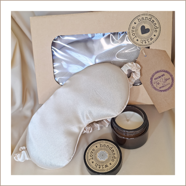 Incluye:Antifaz de satén, vela vegetal y cajita de regalo.
