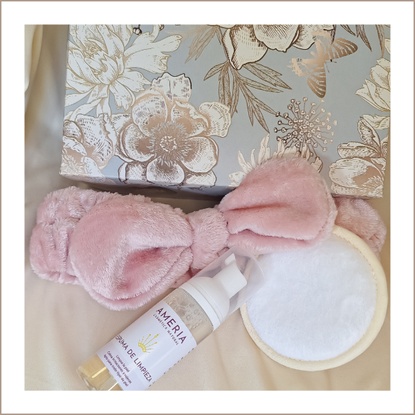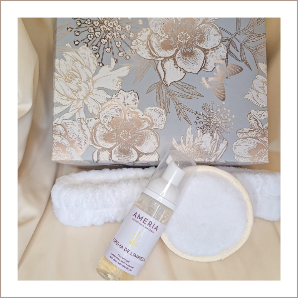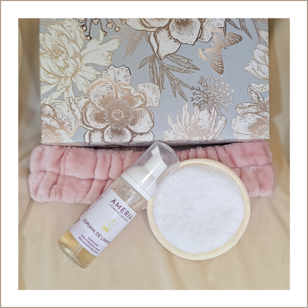 Incluye: Espuma de limpieza facial, vincha, eco pad y cajita de regalo.